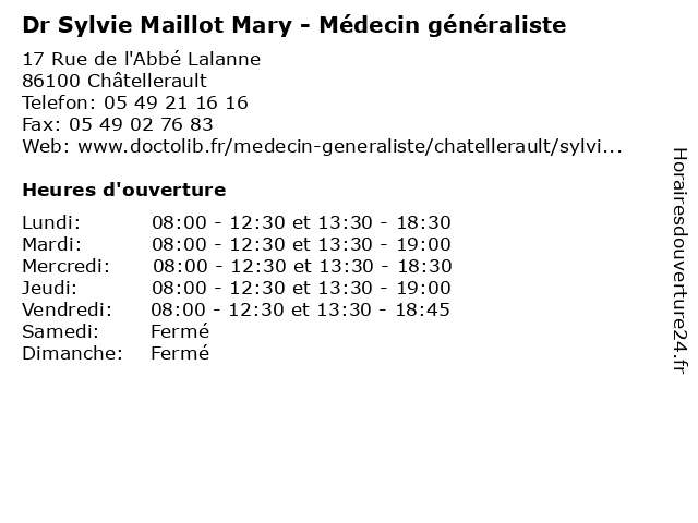 | Mercredi | 08:00-12:30 et 13:30-18:30 |