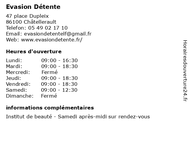 | Jeudi | 09:00-18:30 |