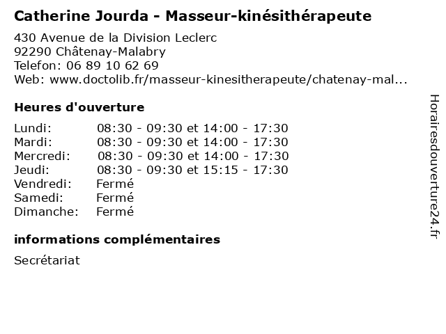 | Mardi | 08:30-09:30 et 14:00-17:30 |