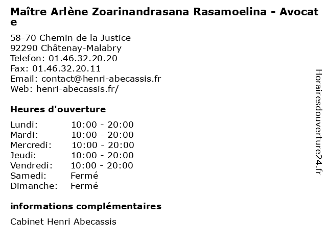 1 Maître Michael Leroy - Avocat (Distance: 0,00 km) 58-70 Chemin de la Justice, 92290 Châtenay-Malabry avocat, avocate, avocats, civils, droits, juridiques, leroy, maître, michael 2 Maître Henri Abecassis - Avocat (Distance: 0,02 km) 58/70 Chemin de la Justice, 92290 Châtenay-Malabry abecassis, avocat, avocate, avocats, civils, droits, henri, juridiques, maître 3 Maître Monia Abbes - Avocate (Distance: 2,86 km) 112 Rue Houdan, 92330 Sceaux abbes, avocate, avocats, civils, droits, juridiques, maître, monia 4 Maître Richard Daudanne - Avocat (Distance: 2,97 km) 45 Rue Houdan, 92330 Sceaux avocat, avocate, avocats, civils, daudanne, droits, juridiques, maître, richard 5 Maître Vincent Bienvenu - Avocat (Distance: 3,78 km) 13 Rue Auguste Mounié, 92160 Antony avocat, avocate, avocats, bienvenu, civils, droits, juridiques, maître, vincent 6 Maître Mélanie de Almeida - Avocate (Distance: 3,86 km) 2 Avenue de la Providence, 92160 Antony almeida, avocate, avocats, civils, de, droits, juridiques, maître, mélanie |