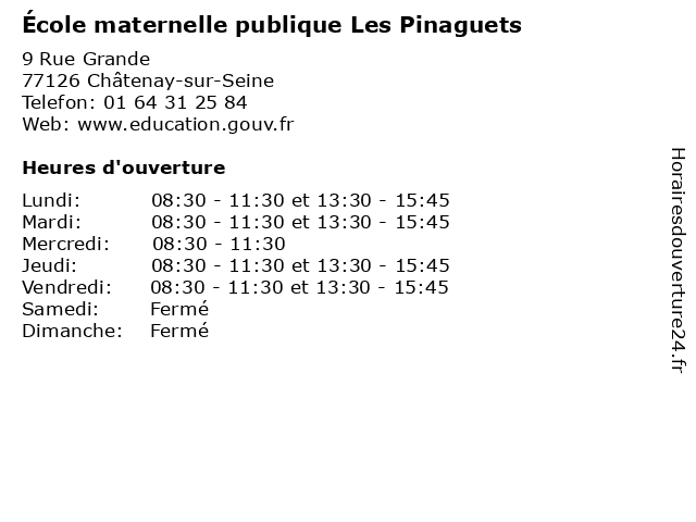 | Mardi | 08:30-11:30 et 13:30-15:45 |