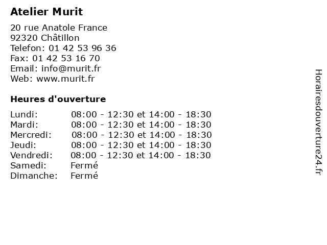 | Lundi | 08:00-12:30 et 14:00-18:30 |