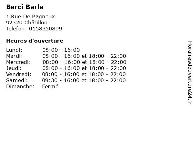 | Mardi | 08:00-16:00 et 18:00-22:00 |