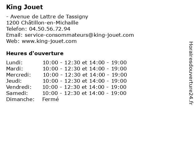 | Samedi | 10:00-12:30 et 14:00-19:00 |