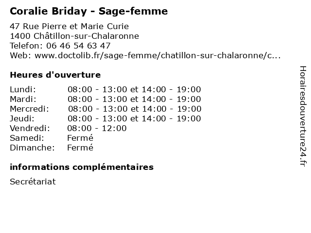| Lundi | 08:00-13:00 et 14:00-19:00 |