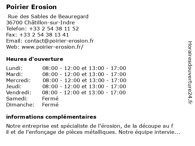 | Lundi | 08:00-12:00 et 13:00-17:00 |