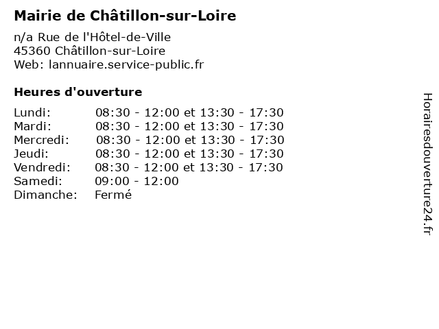 | Lundi | 08:30-12:00 et 13:30-17:30 |