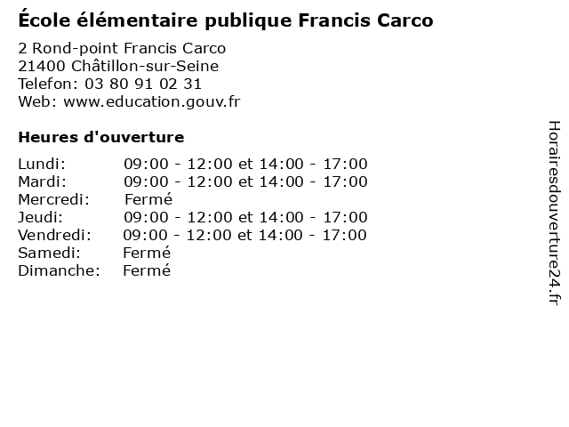 | Mardi | 09:00-12:00 et 14:00-17:00 |