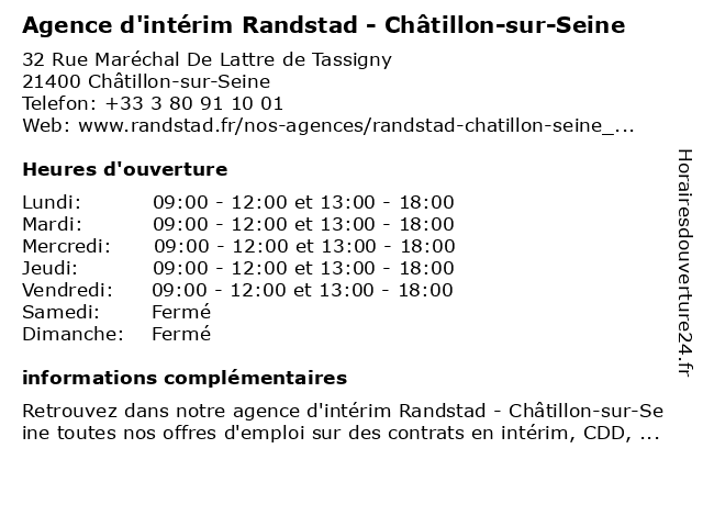 1 Agence d'Intérim Manpower Châtillon-sur-Seine (Distance: 0,12 km) 7 Rue Maréchal Leclerc, 21400 Châtillon-sur-Seine agence, agence de recrutement, agence intérim, agence pour l'emploi, cabinet de recrutement, cdi, châtillon, d'intérim, intérim, manpower, recrutement, seine, sur 2 Pôle Emploi (Distance: 1,98 km) - ZAC Actipôle, 21400 Châtillon-sur-Seine administration, agence, candidats, emploi, employeurs, offres, pole, public, publique, pôle, recherche, service, travail 3 Randstad (Distance: 31,60 km) 39 Rue d'Abrantès, 21500 Montbard intérim industrie, intérim logistique, offres d'emploi, randstad, recrutement grands volumes 4 Pôle Emploi (Distance: 43,32 km) 55 Rue du Général de Gaulle, 10200 Bar-sur-Aube administration, agence, candidats, emploi, employeurs, offres, pole, public, publique, pôle, recherche, service, travail 5 Agence d'intérim Randstad - Chaumont (Distance: 50,54 km) 9 Rue André Blondel, 52000 Chaumont agence, agence intérim, agence pour l'emploi, chaumont, conseils en recrutement, d'intérim, guide des salaires, offres d'emploi, randstad, recrutement intérim 6 Agence d'intérim Randstad - Langres (Distance: 56,81 km) Avenue du 21ème Régiment d'Infanterie, 52200 Langres agence, agence intérim, agence pour l'emploi, conseils en recrutement, d'intérim, guide des salaires, langres, offres d'emploi, randstad, recrutement intérim |