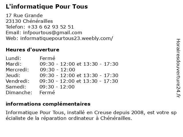 | Mardi | 09:30-12:00 et 13:30-17:30 |