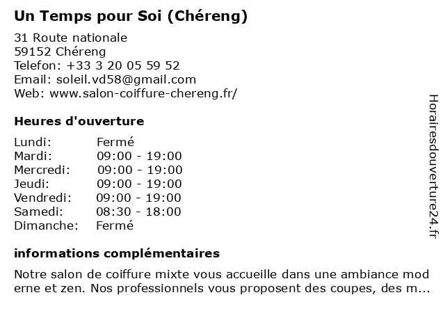 | Lundi | Fermé |