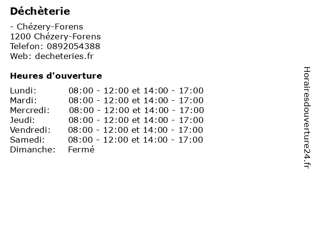 | Mercredi | 08:00-12:00 et 14:00-17:00 |