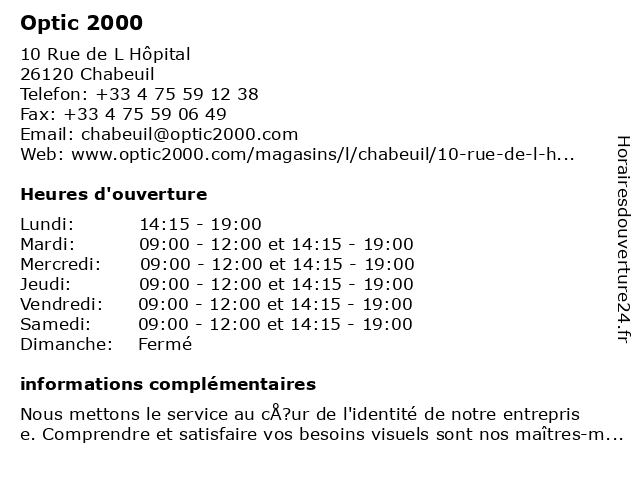 1 Optic 2000 (Distance: 11,10 km) 3 Rue Emile Zola, 26800 Valence 2000, care, clinic, doctor, health, optic, opticiens, optique, vision 2 Optic 2000 (Distance: 19,86 km) 21 Avenue Joseph Combier, 26250 Livron 2000, care, clinic, doctor, health, optic, opticiens, optique, vision 3 Opticien Valence - Optic 2000 - ZAC Le Plateau Des Couleures (Distance: 9,13 km) 14 Rue Pierre Lubat, 26000 Valence 2000, couleures, des, le, lentilles de contact, lentilles de vue, lunettes de soleil, lunettes de vue, lunettes optic 2000, optic, optic 2000, opticien, opticien optic 2000, plateau, valence, zac 5 Opticien Valence - Optic 2000 (Distance: 10,57 km) 6 Avenue Victor Hugo, 26000 Valence 2000, lentilles de contact, lunettes de soleil, lunettes de vue, optic, optic2000, opticien, opticien optic2000, ray-ban, rayban, valence 6 |
