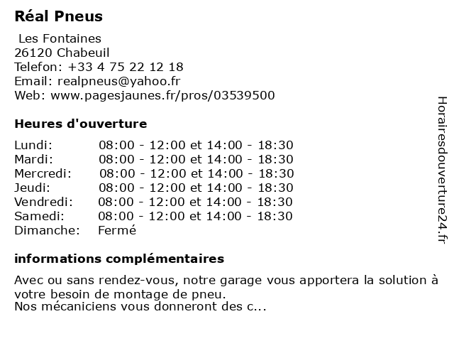 | Lundi | 08:00-12:00 et 14:00-18:30 |
