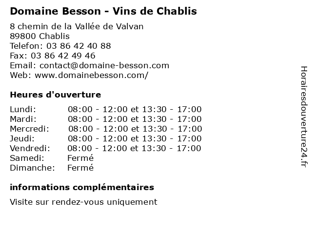 Termes de recherche pour Domaine Besson - Vins de Chablis:de, besson, vins, raisin, domaine, vin, vigneron, chablis, vigne, viticole |