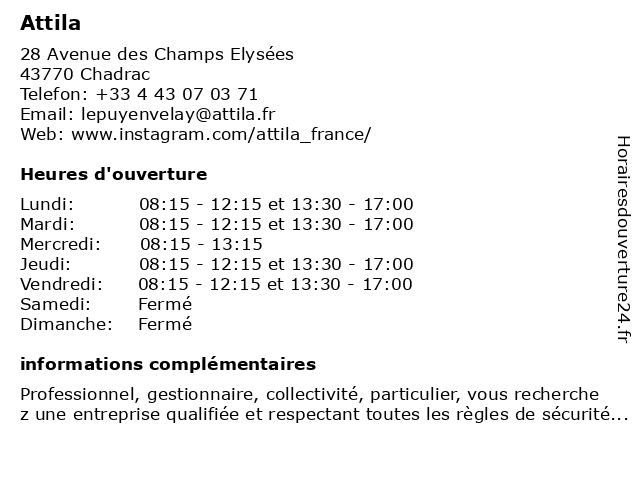 1 Attila (Distance: 52,17 km)10 Rues des Haveuses, 42230 Roche-la-Molière attila