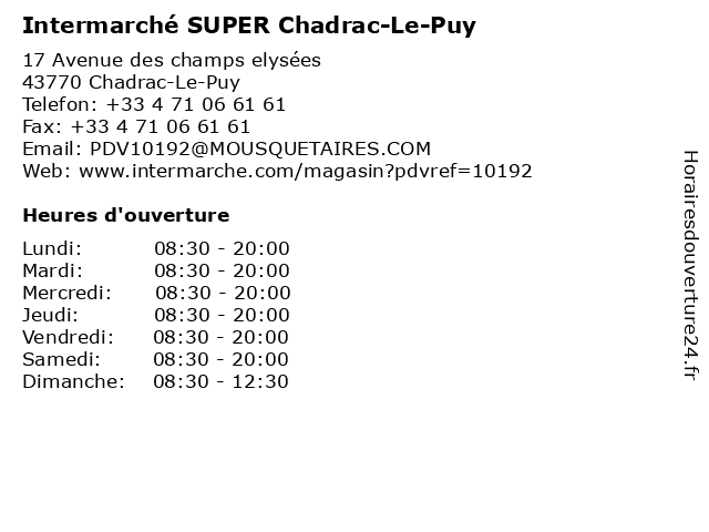 Termes de recherche pour Intermarché SUPER Chadrac-Le-Puy:le, chadrac, intermarché, puy, super |