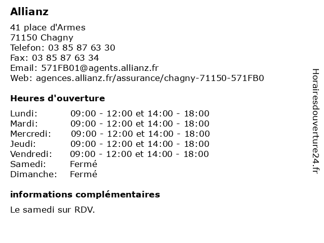3 Allianz (Distance: 19,10 km) 35 Rue Claude, 03150 Varennes allianz, assurance prêt, assurances, services 4 Allianz Assurances Jessaume Rémy (Distance: 10,33 km) Route Nationale 6, 71530 Fragnes-la-Loyère allianz, assurances, jessaume, rémy 5 Allianz Philippe HELLIET (Distance: 15,70 km) 12 Rue Lamartine, 71100 Chalon-sur-Saône allianz, helliet, philippe 6 Allianz (Distance: 31,94 km) 6 place Bonaventure des Periers, 21230 Arnay le Duc agence, allianz, assurances |