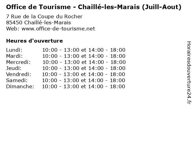 Termes de recherche pour Office de Tourisme - Chaillé-les-Marais (Juill-Aout):les, de, marais, services, office, tourisme, août, bureaux, chaillé, juill |