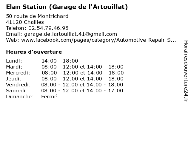 1 Garage de l'Artouillat - Euro Repar (Distance: 1,23 km) 50 Route de Montrichard, 41120 Chailles automobiles, de, euro, garage, l'artouillat, location de voiture, location de véhicules, motos, repa, repar 2 Elan Station - Beaugrand J.Claude (Distance: 11,68 km) 114 Route Nationale, 41700 Cour-Cheverny beaugrand, carburants, diesel, elan, essence, j.claude, sp95, station 3 Elan Stations (Distance: 18,45 km) , Le Bourg, 41140 Saint-Romain-sur-Cher diesel excelan, elan, fuel, premium diesel performance sp 95, sp 98 performance, stations 4 Garage Gargot Automobile (Distance: 22,26 km) Prieure 2 Rue Du, 41330 Champigny En Beauce automobile, garage, gargot, neuves, occasion, vente, voitures 5 Monsieur Eddie Rosier (Distance: 46,85 km) Diocles 8 Rue Louis, 37100 Tours eddie, neuves, occasion, rosier, vente, voitures 6 Lav Car Rent (Distance: 47,12 km) Bergerie 8 Allee De La, 45370 Clery St Andre lav, neuves, occasion, rent, vente, voitures |