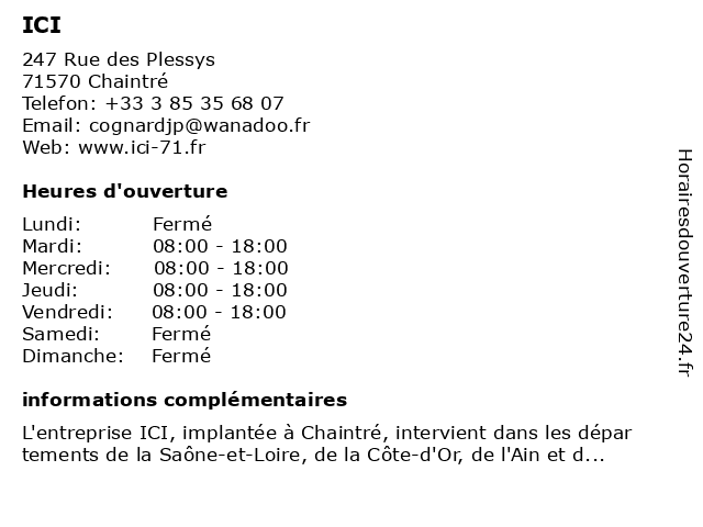 1 Hotel Ici & La (Brasserie le Belooga) (Distance: 30,28 km) 384 boulevard Louis Blanc, 69400 Villefranche-sur-Saône bar, belooga, brasserie, diner, déjeuner, et, hotel, ici, la, le, restaurant, réunions, évenements 2 Ici Habitat (Distance: 30,83 km) 11 Route de Saint-Trivier, 01330 Ambérieux-en-Dombes aménagement, constructeur, habitat, ici, immobilier, rénovation 3 Green Acres - Ici Partner (Distance: 46,99 km) 10 Cours du Buisson, 69270 Fontaines-Saint-Martin acres, agency, apartment, green, ici, partner, real estate 4 Au Bon Truc d'Ici (Distance: 49,82 km) 1580 Rue Claude Terrasse, 69210 L' Arbresle au, bistrot, bon, d'ici, ici, restaurant, restaurants, sgb, truc 6 Entrepreneurs du Monde - ICI Incubation (Distance: 56,94 km) 4 Allée du Textile, 69120 Vaulx-en-Velin association, du, entrepreneurs, ici, incubation, insertion, monde, économique |