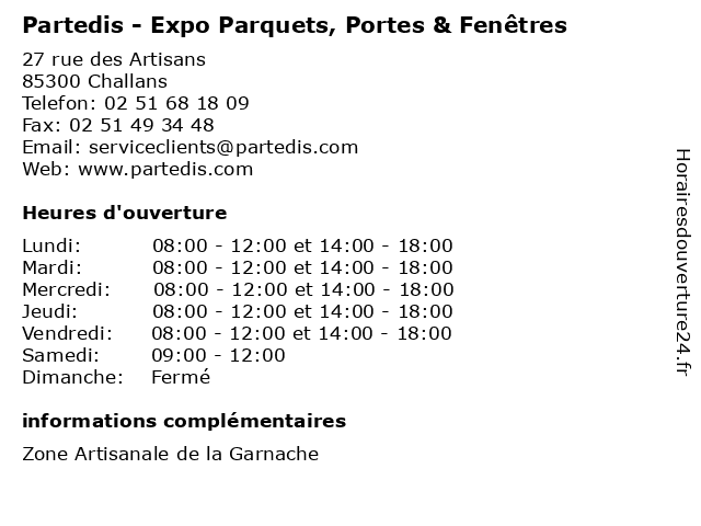 1 Partedis - Bois Matériaux (Distance: 0,00 km) 27 rue des Artisans, 85300 Challans bois, cloison, fenetre, isolation, matériaux, partedis, portail, porte, service, terasse 2 Huet Portes & Fenêtres (Distance: 2,42 km) 30 rue Pauline de Lézardière, 85300 Challans extérieure, fenêtres, huet, intérieure, menuiserie, portes 4 Portes Bel'M (Distance: 14,22 km) 2 Rue Gustave Eiffel, Zone industrielle de la Seiglerie, 44270 Machecoul acier, aluminium, bel'm, entrée, portes 5 Vm Materiaux (Salle Expo) (Distance: 18,69 km) 20 Route de la Roche S/Yon, 85800 Saint-Gilles Croix de Vie constructives, equipements, expo, materiaux, salle, services, vm 6 Point P (d'exposition) (Distance: 37,57 km) . RTE BLEUE, 44210 PORNIC aménagement, d'exposition, equipement, loisirs, point |