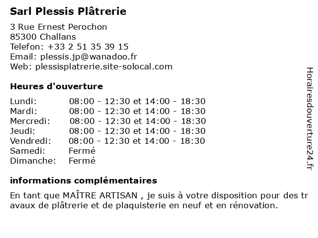 | Lundi | 08:00-12:30 et 14:00-18:30 |