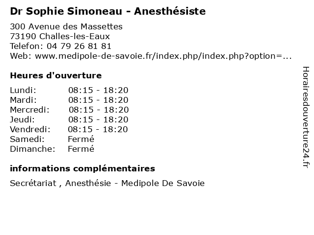 | Lundi | 08:15-18:20 |