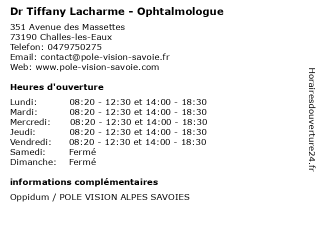 | Lundi | 08:20-12:30 et 14:00-18:30 |