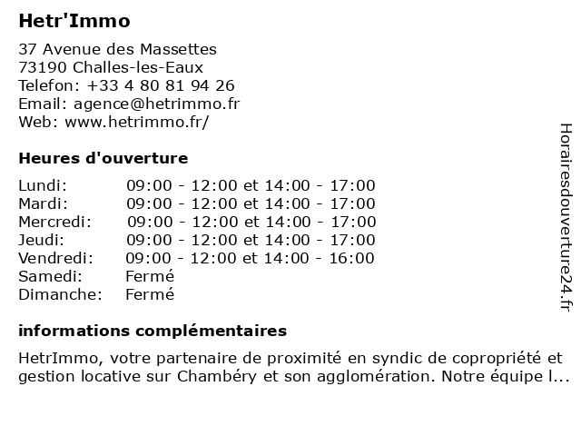 Horaires d'ouverture |