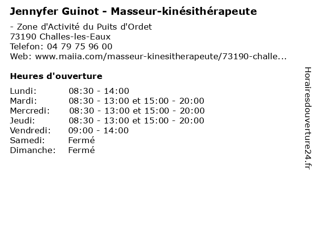 | Mardi | 08:30-13:00 et 15:00-20:00 |