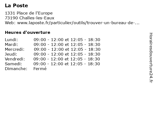 | Lundi | 09:00-12:00 et 12:05-18:30 |