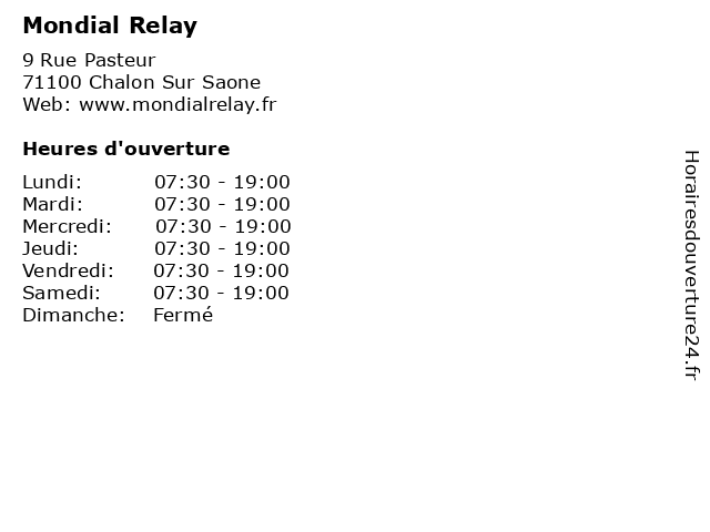 1 Mondial Relay (Distance: 1,74 km) 34 Avenue de l'Aubepin, 71100 Chalon Sur Saone assurances, banques, mondial, mondial relay, relay, services 2 Mondial Relay (Distance: 2,26 km) 14 Rue Saint Helens, 71100 Chalon Sur Saone assurances, banques, mondial, mondial relay, relay, services 3 Mondial Relay (Distance: 2,35 km) 4 Rue De la Guerlande, 71880 Chatenoy Le Royal assurances, banques, mondial, mondial relay, relay, services 4 Mondial Relay (Distance: 4,01 km) 9 Rue Paul Sabatier, 71100 Chalon Sur Saone assurances, banques, mondial, mondial relay, relay, services 5 Mondial Relay (Distance: 4,41 km) - Champ Chassy, 71380 Chatenoy en Bresse assurances, banques, mondial, mondial relay, relay, services 6 Mondial Relay (Distance: 8,34 km) 28 Rue de la Republique, 71640 Givry assurances, banques, mondial, mondial relay, relay, services |