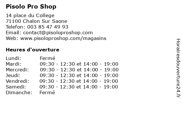 | Samedi | 09:30-12:30 et 14:00-19:00 |