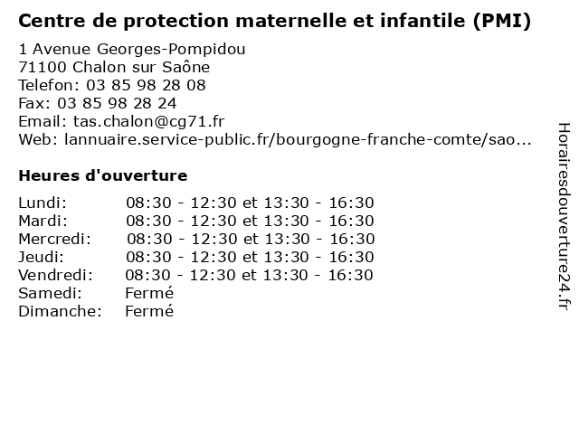 | Lundi | 08:30-12:30 et 13:30-16:30 |