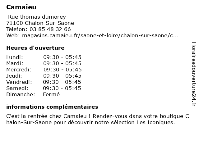 1 Camaieu (Distance: 0,98 km) 40 Grande rue, 71100 Chalon-Sur-Saone camaieu, magasin de chaussures, magasin de t-shirts, magasin d’accessoires de mode, maroquinerie, mode 2 Camaieu (Distance: 1,28 km) Grand magasin galeries lafayette, 71100 Chalon-Sur-Saone camaieu, magasin de chaussures, magasin de t-shirts, magasin d’accessoires de mode, maroquinerie, mode 3 Camaieu (Distance: 3,15 km) Rue des poilus d'orient, 71100 Chalon-Sur-Saone camaieu, magasin de chaussures, magasin de t-shirts, magasin d’accessoires de mode, maroquinerie, mode 4 Z Generation (Distance: 0,84 km) 9 rue Saint Vincent 7, 1100 Chalon Sur Saone accessories, children 0-14 years, clothing, coats, dresses, generation, hoodies, jackets, jeans pants, pajamas, shirts, shoes, skirts, sweatshirts, t-shirts 5 Z Generation (Distance: 27,46 km) , St Jacques, 21200 Beaune accessories, children 0-14 years, clothing, coats, dresses, generation, hoodies, jackets, jeans pants, pajamas, shirts, shoes, skirts, sweatshirts, t-shirts 6 Camaieu (Distance: 27,83 km) 1 Place au beurre, 21200 Beaune camaieu, magasin de chaussures, magasin de t-shirts, magasin d’accessoires de mode, maroquinerie, mode |