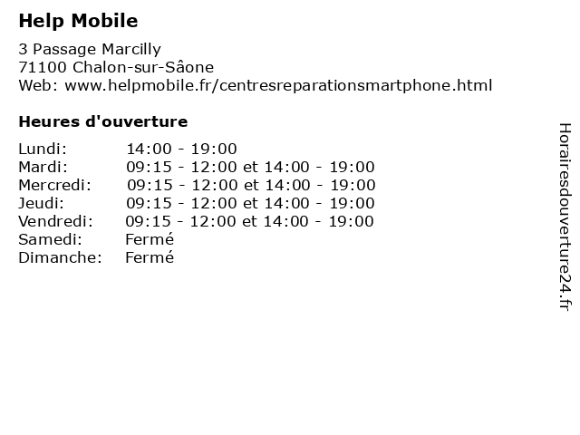 | Mercredi | 09:15-12:00 et 14:00-19:00 |