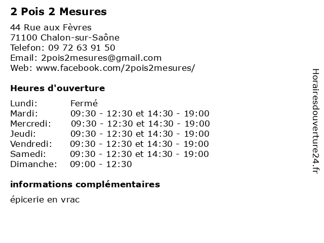 Samedi | 09:30-12:30 et 14:30-19:00 |