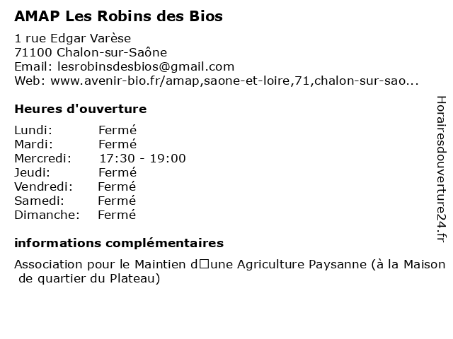 Termes de recherche pour AMAP Les Robins des Bios:les, des, alimentation, fruits, légumes, primeurs, producteur, robins, bios, amap |