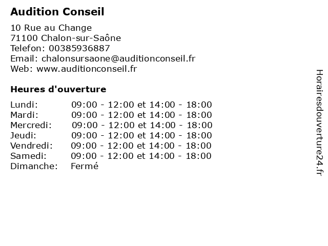 1 Audition Conseil (Distance: 11,36 km) - Zone Artisanale de Velard, 71370 Ouroux-sur-Saône aide, audioprothésiste, audition, auditive, bourgogne, conseil, optique, santé, spécialiste 2 Audioprothésiste Chalon sur Saone Audition Santé (Distance: 0,00 km) 10 Rue au Change, 71100 Chalon-sur-Saône audioprothésiste, audition, chalon, santé, saone, sur 3 Audioprothésiste CHALON CENTRE VILLE Audition Santé (Distance: 0,00 km) 10 Rue Au Change, 71100 Chalon-sur-Saône audiologie, audioprothésiste, audition, centre, chalon, santé, ville 5 Audition Santé (Distance: 0,50 km) 14 Rue d'Autun, 71100 Châlon-sur-Saône audioprothèse, audioprothésiste, audition, santé 6 Audioprothésiste Chalon sur Saone Audition Santé (Distance: 1,20 km) 5 Rue Capitaine Drillien, 71100 Chalon-sur-Saône audioprothésiste, audition, chalon, santé, saone, sur |