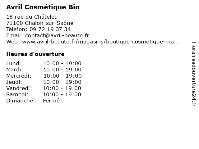 1 Office de Tourisme - Avril à Mai et Octobre (Distance: 18,59 km) - Gare SNCF, 21590 Santenay 1er, 31, au, avril, boutique, brochures, cartes, circuits, de, et, informations, mai, octobre, office, tourisme 2 Adopt' (Distance: 0,15 km) 41 Grande Rue, 71100 Chalon sur Saone accessoires, adopt', bijoux, maquillage, mode, parfums 3 Nocibé (Distance: 0,15 km) 14 Rue au Change, 71100 Chalon-sur-Saône beauté, cosmétiques, esthétique, nocibé, parfumerie, parfums, soins 4 Tanguy Parapharmacie (Distance: 0,17 km) 50 grande Rue, 71100 Chalon Sur Saône beauté, cosmétique, institut, parapharmacie, soins, tanguy 5 Nocibé (Distance: 2,18 km) . Rue des Poilus d'Orient, 71100 Chalon-sur-Saône beauté, cosmétiques, esthétique, nocibé, parfumerie, parfums, soins 6 Oïa Beauté (Distance: 32,88 km) 20 Avenue du Maréchal Leclerc, 71200 Le Creusot beaute, beauté, femme, hommes, oïa, parfums |