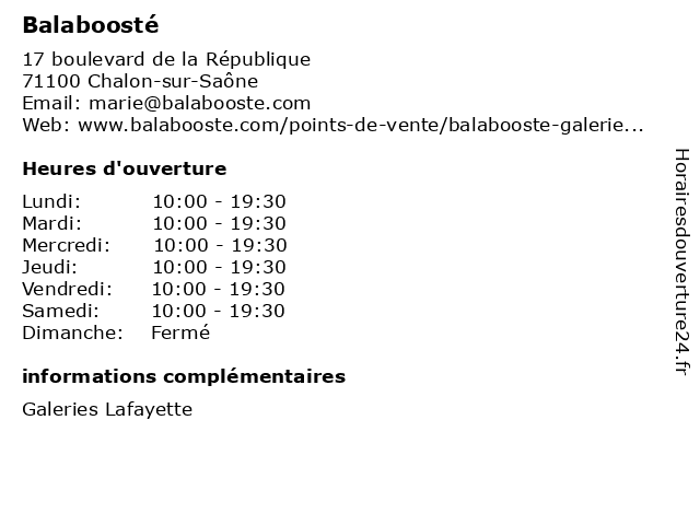 | Mercredi | 10:00-19:30 |