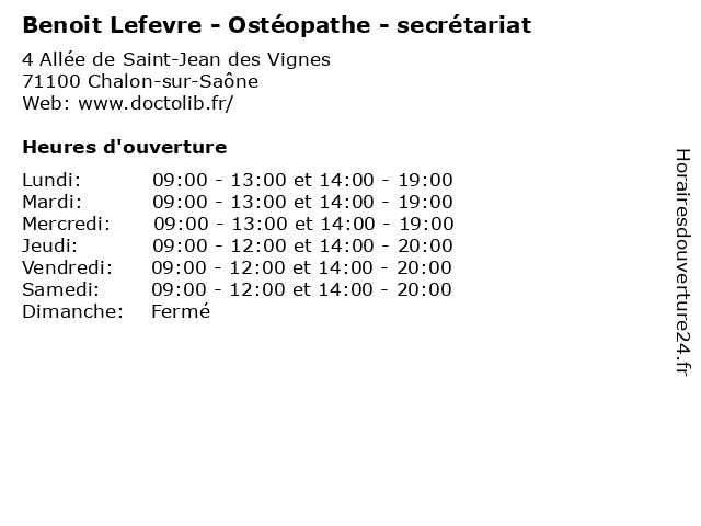 | Samedi | 09:00-12:00 et 14:00-20:00 |