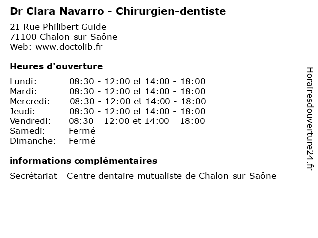 | Lundi | 08:30-12:00 et 14:00-18:00 |