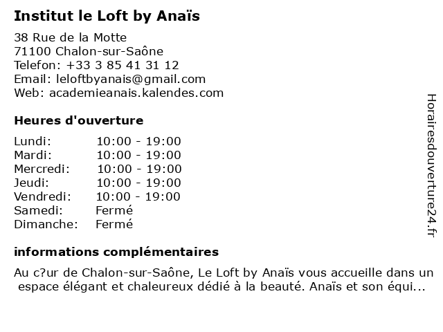 Termes de recherche pour Institut le Loft by Anaïs:le, by, loft, institut, anais |