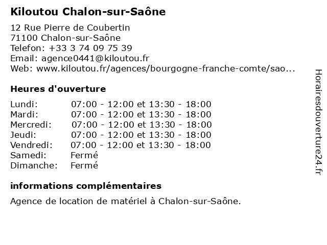 | Lundi | 07:00-12:00 et 13:30-18:00 |