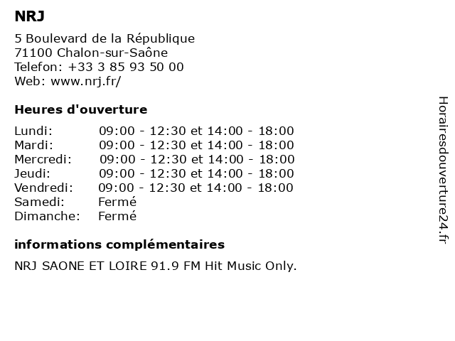 | Lundi | 09:00-12:30 et 14:00-18:00 |