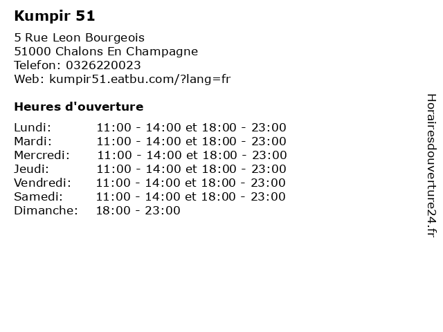 | Mardi | 11:00-14:00 et 18:00-23:00 |