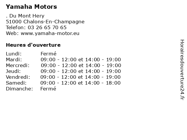 1 Yamaha Motors (Distance: 10,92 km) 95 Rue de la Croisette, 51460 Courtisols cyclos, maxi-scooter, motors, motos, scooter, yamaha 2 Yamaha Motors (Atelier) (Distance: 0,00 km) . Du Mont Hery, 51000 Chalons-En-Champagne atelier, cyclos, maxi-scooter, motors, motos, scooter, yamaha 4 LD Motors (Distance: 1,24 km) 90 faubourg Saint Antoine, 51000 Châlons-en-Champagne atelier, automobiles, carrosserie, entretien, garage, ld, motors, reparation 5 Kia Rey Motors (Distance: 4,60 km) 17 Avenue du Maquis des Glières, 51470 Saint-Memmie kia, motors, rey 6 Yamaha Motors (Distance: 30,52 km) 5 Rue Ernest Valle, 51200 Epernay cyclos, maxi-scooter, motors, motos, scooter, yamaha |
