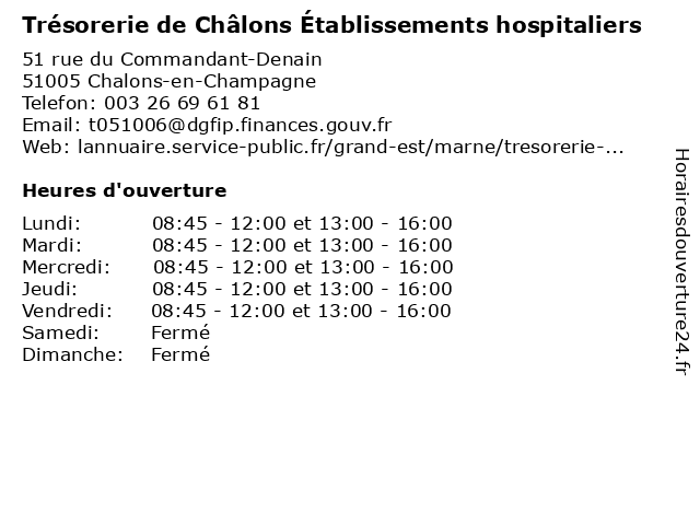 Termes de recherche pour Trésorerie de Châlons Établissements hospitaliers:de, chalons, etablissements, trésorerie, hospitaliers |